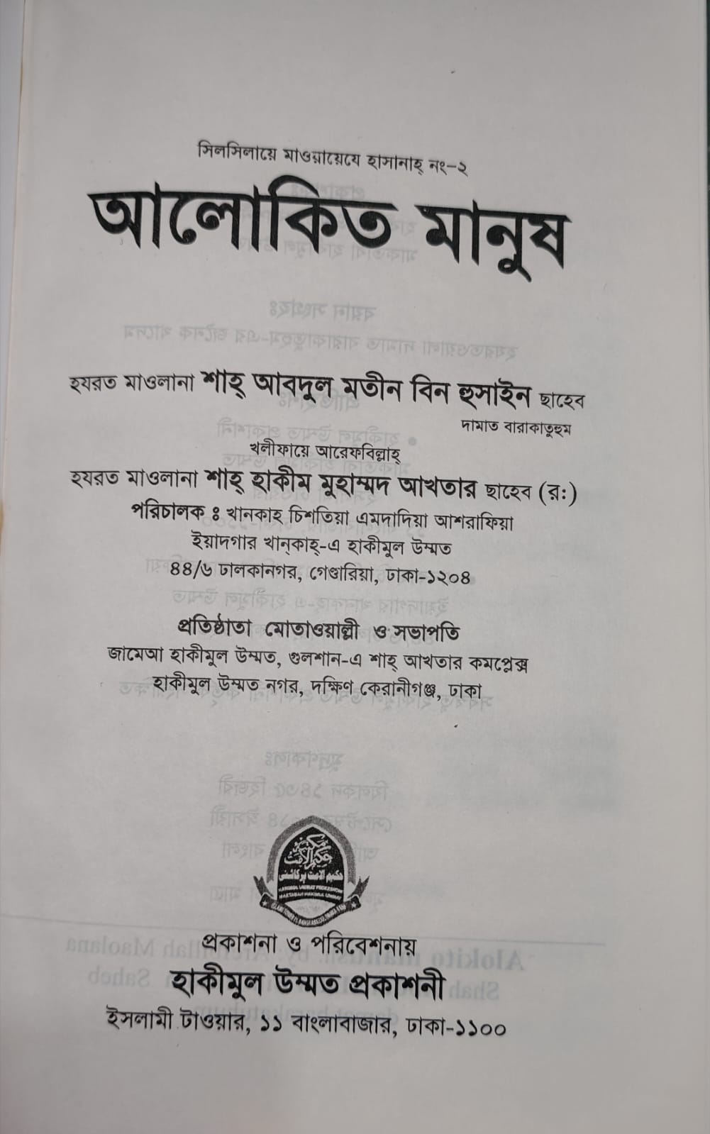 “আলোকিত মানুষ” একটি অনন্য গ্রন্থ, যা মানুষের চরিত্র গঠন, নৈতিক উন্নয়ন এবং আধ্যাত্মিক জীবনকে আলোকিত করার দিকনির্দেশনা প্রদান করে। মাওলানা আবদুল মতীন বিন হুসাইন এই বইটিতে সমাজে প্রকৃত অর্থে একজন আদর্শ মানুষ হওয়ার জন্য প্রয়োজনীয় গুণাবলী, আদর্শ জীবনযাপনের পথ এবং আত্মশুদ্ধির বিভিন্ন ধাপ সুন্দরভাবে উপস্থাপন করেছেন।
